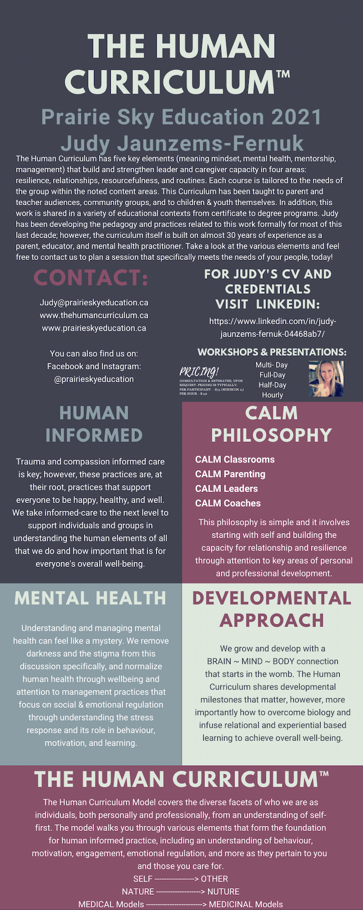 If so, you have come to the right place, as Judy can be booked to speak at your next event. With a plethora of personal and educational experiences, Judy speaks on a variety of topics close to her heart and her professional life. Browse the list below and if you are interested in booking a multi-day; full or half day; or even a one hour introductory session contact us! 306-986-2663
